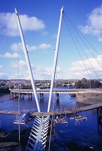 미디어시티UK에 위치한 비대칭 케이블 지지 보행자 교량은 현장 제약에 의해 결정된 뛰어난 구조물입니다. 이 랜드마크 교량은 MediaCityUK 개발의 중요한 요소로 자리매김하고 있습니다.
