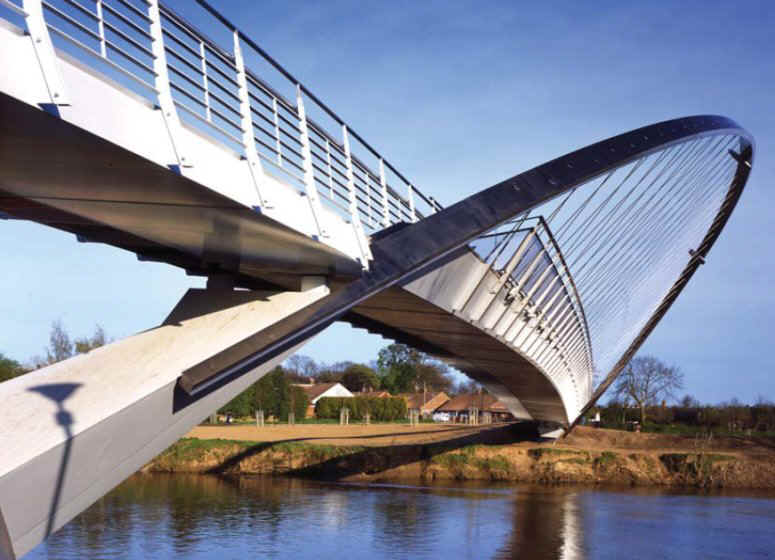 록미드 풋브릿지는 영국 켄트주 메드웨이 강을 가로지르는 혁신적인 케이블 스테이 알루미늄 교량입니다. 이 교량은 응답 시간 해석을 통해 동적 응답을 예측하며, 설계 기준에 부합하는 구조로 환경적이고 역사적으로 민감한 위치에 적합하게 설계되었습니다.