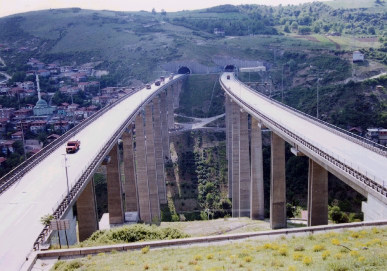 1999년 8월, 터키 Kocaeli 지진으로 Trans-European Motorway 상의 많은 구조물들이 파괴되었는데, 모두 20개의 고가교, 5곳의 터널, 다수의 고가교차로 등이 피해를 입었다. 피해는 콘크리트 균열, 교좌장치를 이탈하는 거더, 교각차양, 진입로 채움흙의 침하, 그리고 전체적으로 교각의 노면이 파괴되는 등 피해 범위는 다양했다. Turkish general Directorate of Highways와 허가하에 공동으로 Gebze Institute of Technology 사는 Mustafa Inan 고가교의 지진평가연구를 포함하여, 진원지로부터 5km이내의 다수의 구조물들에 대해 지진시 발생하는 영향을 연구하기 위하여 LUSAS Bridge 프로그램을 사용하였다.