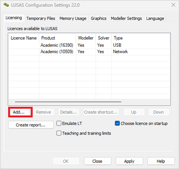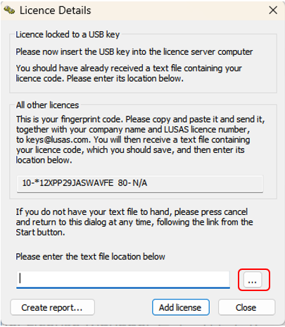 프로그램이 설치된 컴퓨터에 USB Lock 을 연결한 후 이메일로 전송받은 Licence Key 를 LUSAS 프로그램에 등록합니다.