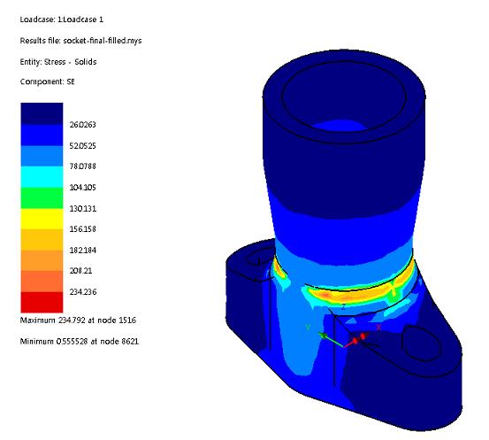 • 소켓 내부 벽면에 분포하중으로 작용하도록 소켓 내부를 분리된 별도의부재로 채워 하단으로 이동시켜 내부에 접촉되면서 압력하중으로 작용하도록 설정