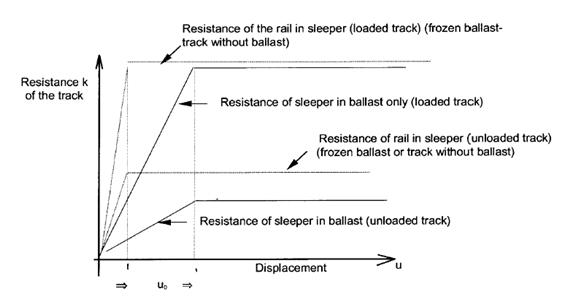 Rail과 Slab를 각각 3차원 보 요소를 사용하여 모델링하며, 도상은 비선형조인트요소(Nonlinear Joint Element)를 사용하여 하중의 크기에 따라 수평방향의 스프링 상수값이 UIC774-3에서 정하는 바와 같이 Loaded/Unloaded 상태에 따라 평상시/항복시에 해당하는 4단계에 걸쳐서 변화되어 적용된다.