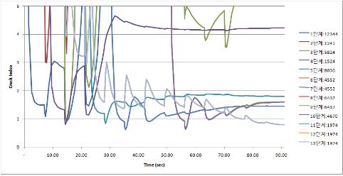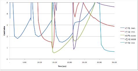 각 타설 단계별 최대 주응력 발생 위치에서의 균열지수 변화