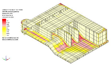 - 수화열 발생과 이에 따른 열해석에는 HF8요소, 열해석 결과를 입력값으로 하는 시간이력 구조해석에는 HX8M요소를 사용