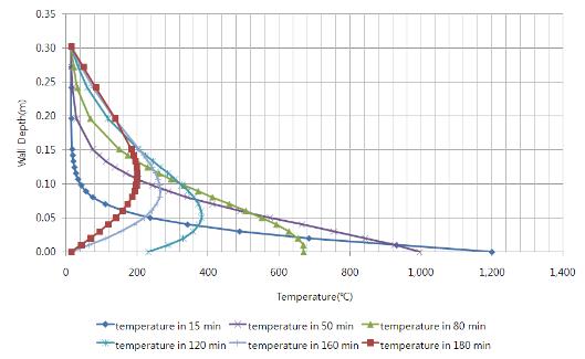 터널라이닝의 철근 최고온도 도달시 온도분포 의한 온도분포