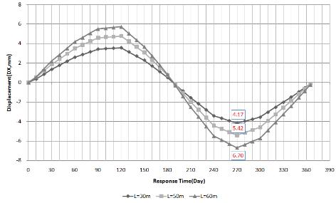 연중 온도변화에 대한 열해석 수행, 여기에서 얻어진 시간단계별 온도분포이력을 하중으로 시간단계별 구조해석을 수행하는 Thermo-Mechanical Couple Analysis를 수행