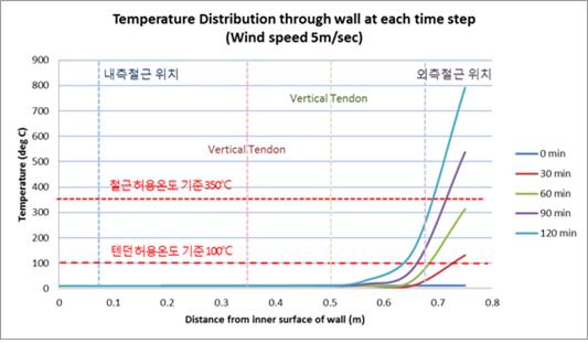 • 인접 탱크 화재가 2시간 지속되었을 때의 구조물 온도 분포 및 단면력 검토