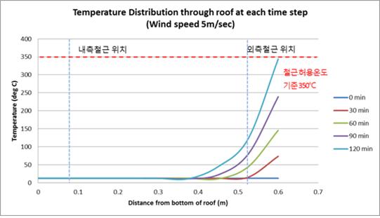 LNG 탱크 지붕 단면의 온도 분포 (풍속 5m/sec)
