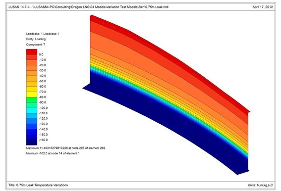 열해석 경계조건 : 16.4℃의 대기온도 및 –162℃의 LNG 온도 경계