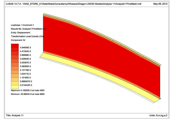 LNG 탱크 반경 방향 변위 분포도