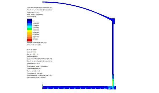 LNG 탱크의 응력 분포도 (SE, Long-term)