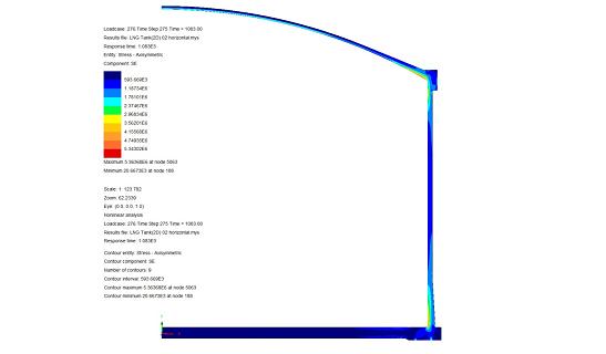 LNG 탱크의 응력 분포도 (SE, Stage 14)