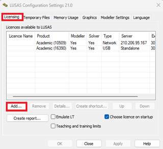 - Licensing 탭 하단의 ‘Add…’ 버튼을 클릭합니다.