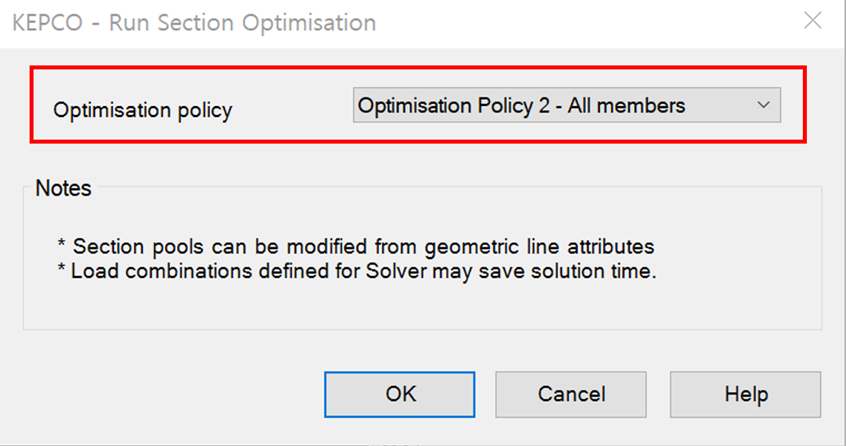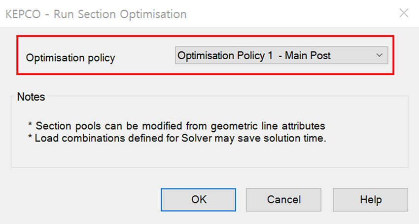‘Utilisation target to achieve’ 값은 0.9로 정의되어 있으나, 필요에 따라 사용자가 값을 수정하여 단면 최적화 수행에 적용할 수 있습니다. 최대 UtilPM이 0.9가 넘지 않도록 단면을 최적화 하는 경우, ‘Utilisation target to achieve’ 값을 0.8로 설정 후 최대 UtilPM이 0.9이내인지를 판단하는 방식으로 단면 최적화를 단순화 할 수 있습니다.