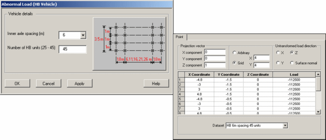 임의 하중은 교량 상 차량이 이동할 경로선상의 한 점을 중심으로, 차량 바퀴의 위치와 하중크기를 정의하여 어떤 형태의 차량하중이건 정의할 수 있습니다.