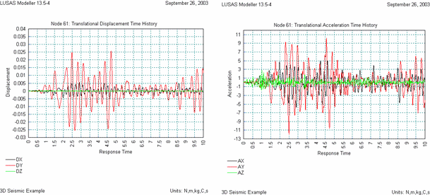 중앙 기둥 최상단에서의 처짐과 가속도 변화 추출