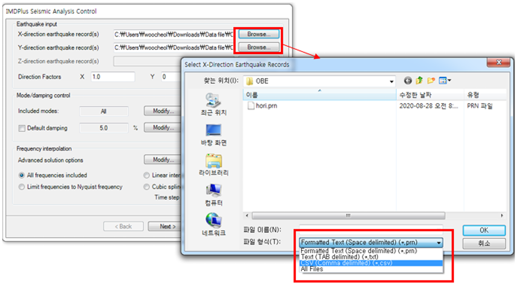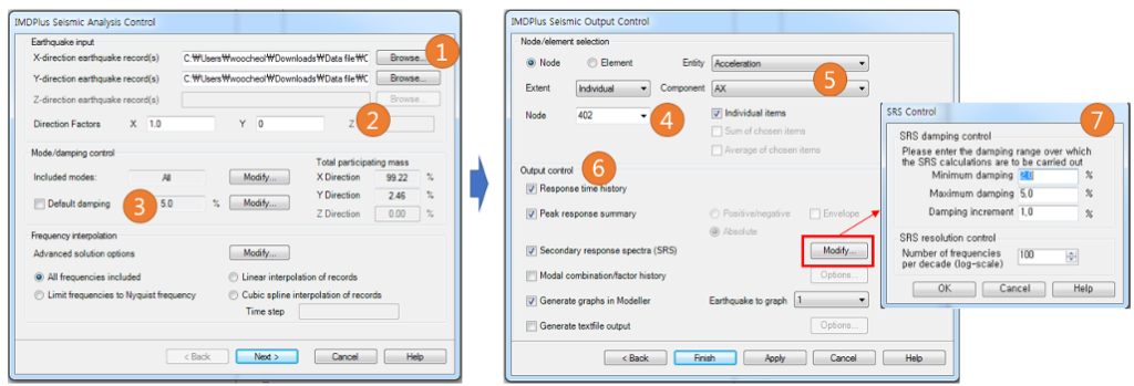 예) 5% ~ 20% 댐핑에 대한 SRS(Secondary Response Spectra) 생성