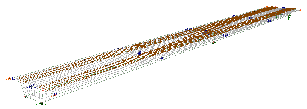 아래 절차는 중간 경간의 대표적인 영향점을 대상으로 열차 하중을 분석하는 간단한 플레이트/셸 모델을 예로 들어 설명합니다.