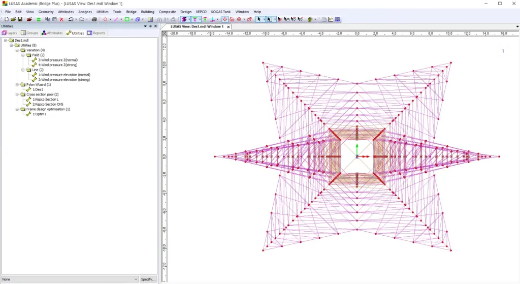 정의된 Pylon Definition 중 하나를 선택하면, 지정된 조건에 맞는 해석 모델이 생성됩니다.