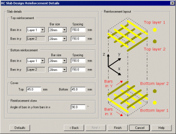 RC 슬래브/벽 설계 기능을 사용하면 프리스트레싱이 적용되지 않은 철근콘크리트 슬래브 및 벽체를 판(Plate) 또는 쉘(Shell) 요소로 모델링하여 해석할 수 있습니다. 극한한계상태(ULS) 에서 필요한 휨 보강량을 나타내는 등고선 및 수치 결과를 확인할 수 있으며, 이를 지원하는 설계 기준에 대해서는 사용한계상태(SLS) 에서의 설계 균열폭도 계산할 수 있습니다.