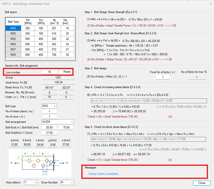 볼트 설계를 수행하고, 부재별로 계산된 볼트 수량에 대한 검증 도구를 제공합니다.