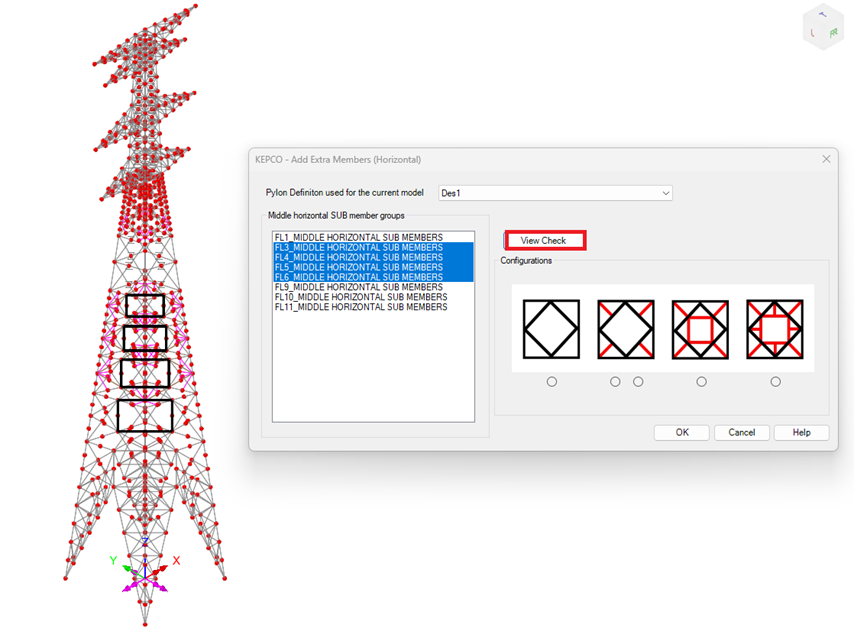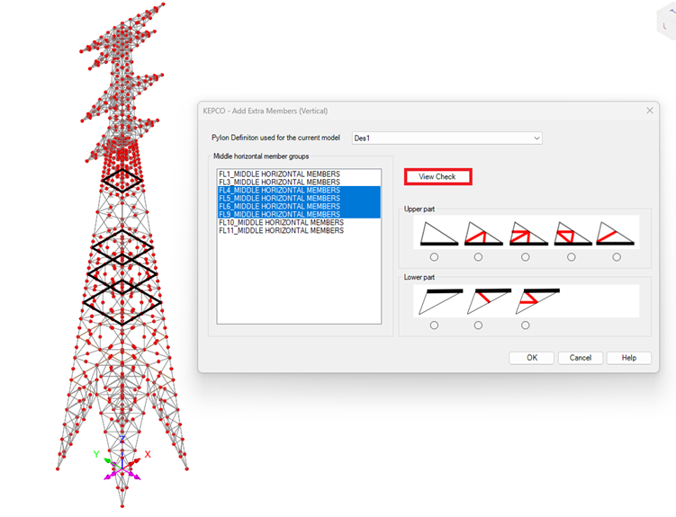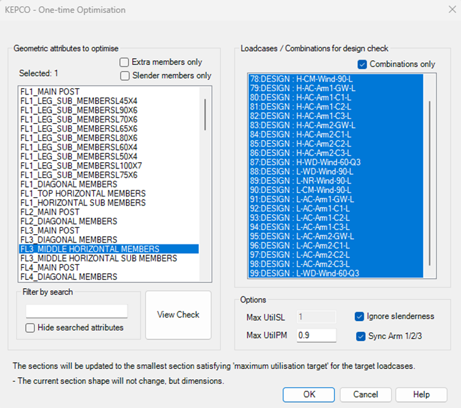 단면 최적화 (설계 최적화)를 수행하면, 여러 철탑이 공유하는 상부의 부재에 대해서는, 철탑 각각에 대한 검토 결과를 모두 만족하는 단면이 선정됩니다.