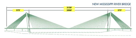 68m(222 feet) 폭의 Mississippi River Bridge 는 세계 최대 넓이의 사장교가 될 것이며, 교량은 향후 추가될 4개의 차선을 포함하여 8개의 차선을 갖게 된다. 교량의 총 길이는 대략 961m(3,150 feet)로, 610m(2000 feet)의 주 경간은 미시시피강을 가로지르는 가장 길고 안전한 경간이 될 것이며, 서반구에서 최장의 사장교로, 세계에서 5번째로 긴 사장교 경간이 될 것이다. 155m(510 foot)높이의 두개의 주탑이 각각 도로교 상공 133m (435 feet)까지 치솟게 될 것이며, 주 경간에서 3개의 케이블 면을 사용하는 최초의 사장교가 될 것이다.