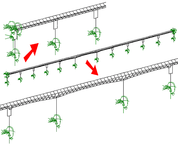 이러한 해석 요구사항을 충족시키고 설계의 안정성을 증명하기 위해서 국부 모델과 전체계 모델을 포함한 4가지 형태의 독립적인 LUSAS 모델이 사용되었다.