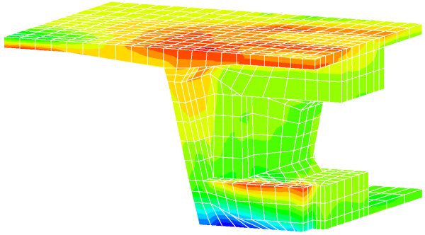 Kvaerner Technology Ltd는 포르투갈 리스본의 뉴 타구스 크로싱 설계를 위한 컨소시엄의 일원입니다. 이들은 LUSAS Bridge의 광범위한 고체 모델링 기능을 활용하여 6.5km 길이의 중앙 교각 구간에서 강화 콘크리트 다이어프램을 해석했습니다.