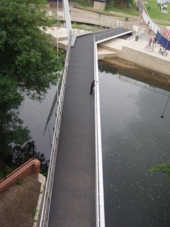Ramboll의 경쟁에서 우승한 이 교량 설계는 영국에서 독특하며, 케이블 스테이 스윙 교량 형태의 참신한 변화체입니다. 가위처럼 생긴 형태는 인근 실크 밀의 유산을 반영한 재단사의 가위에서 부분적으로 영감을 받았습니다. 최종 결과는 강과 오래된 밀 레이스를 모두 아우르는 경제적인 구조물입니다.
