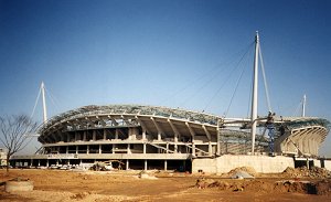 영국의 Tony Gee & Partners사(이하 TGP)는 한맥중공업과 계약하에 2002년 월드컵 경기를 위해 지어지는 11개의 새로운 경기장의 하나로 4,200석을 가진 전주 월드컵 경기장의 260m x 160m 지붕구조의 해석을 수행하였다. A자 형태의 기둥으로 부터 지지받는 트러스 구조와 4개의 63m 높이의 기둥을 중심으로 부채꼴로 펼쳐지는 케이블에 의해 지지되는 링 트러스 구조로 구성되어 있다. 모든 케이블 지지는 장대 기둥에 연결된 다른 케이블의 영향을 받기 때문에 케이블에 장력을 부여하고 지붕을 구성하는 각 절차는 정확한 형상을 건설하되 과도한 응력 발생으로 인한 실패가 없도록 하기 위해 아주 중요한 요소가 된다.  TGP는 각 시공단계를 형상화 하고 케이블의 인장력 변화 과정을 체크하기 위해 LUSAS Civil & Structural을 사용하였다.