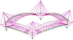 해석 보고서는 케이블에 긴장력을 도입하는 순서와 정해진 시간 단계에서 사용되어야 할 긴장력의 값을 정의하는 것이었다. 어느 한 케이블 또는 한 쌍의 케이블에 부여하는 긴장력이 다른 케이블에 미치는 영향을 사전에 예측하고자 하는 것이다.  이를 위하여 지붕과 주기둥, 케이블을 모두 포함하는 구조해석모델이 필요하였다.