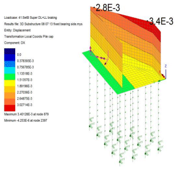 말뚝 기초 모델링, 기차 제동 하중으로 인한 변위 표시 |