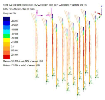 모델링 및 해석 작업을 종합하여, 앳킨스의 수석 엔지니어 드. 파비앙 롤레는 다음과 같이 말했습니다: “어떠한 우발 하중 및 덱 비틀림 한계를 고려한 수퍼구조물 및 하부 구조 상호작용 해석을 수행하는 것은 2D 또는 3D 그릴리지 모델을 사용할 경우 매우 번거롭고, 이전 기준에 따라 많은 추가적인 수작업 계산이 필요합니다. LUSAS를 사용하여 전체 3D 유한 요소 모델을 생성함으로써 설계를 신속하고 효율적으로 완료하고, 높은 정확도로 단면 크기를 최적화할 수 있었습니다.”