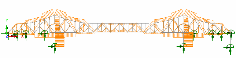 해체 절차를 모델링하기에 앞서, 현재 서비스를 받고 있는 구성에 대한 단일 글로벌 모델을 정확한 부재 단면과 중량을 사용하여 생성해야 했습니다. 1930년대 제작 도면에 대한 철저한 검토는 캘리포니아 교통국이 제공한 것으로, 이는 섹션 속성, 부재 중량 및 바닥의 중량을 제공합니다. 사용 가능한 원래 설계 도면에는 원래 설계자의 부재 응력과 기둥 반력에 대한 응력 시트가 포함되어 있습니다. 이러한 정보는 LUSAS 모델을 ‘기준’화할 수 있게 하여 교량 부재의 응력과 반력을 신뢰할 수 있는 예측이 가능하게 합니다. 기준화가 완료된 후, 여러 개조가 이루어진 모델로 업데이트되었습니다. 여기에는 바닥 하중의 수정 및 바닥 시스템의 업데이트가 포함되었습니다. 처음에는 시공 순서가 모델의 출력에 큰 영향을 미치지 않을 것 같았습니다. 그러나 시공 순서를 더 자세히 연구한 결과, 구조물의 여러 단계에서 교량의 여러 위치에서 잭킹이 이루어져 부재의 정확한 맞춤을 보장하고 교량의 변형 모양이 올바르도록 하였습니다. 이러한 잭킹은 모델에서 고려되어야 할 잠겨있는 시공 응력을 발생시켰습니다. 이 조립 순서를 모델링하는 것은 정확한 모델 개발에 매우 중요했습니다.
