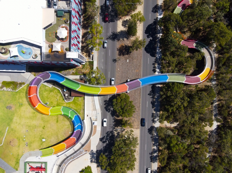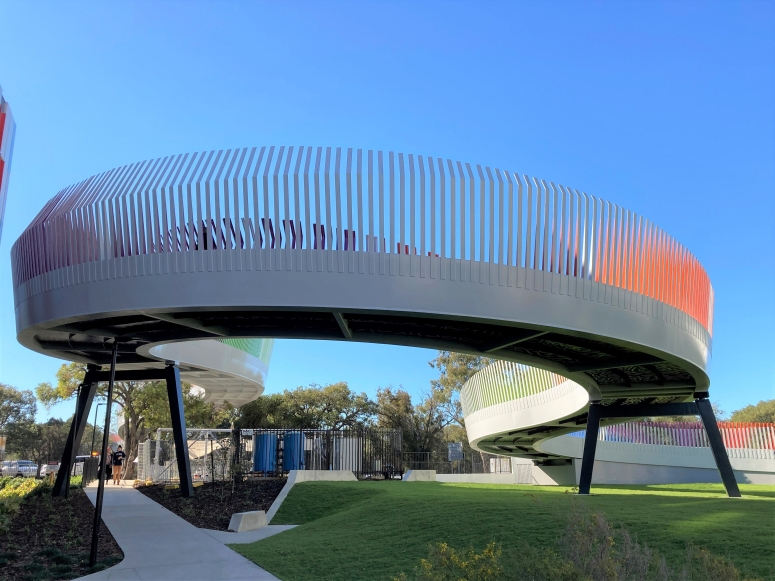 시각적으로 매력적인 키즈 브릿지는 퍼스 아동 병원과 QEII 의료 센터 캠퍼스에서 서호주에서 가장 많이 방문되는 곳인 킹스 파크로의 안전하고 직접적인 접근을 제공합니다. 매우 제한된 부지 특성으로 인해 총통거더 디자인이 사용되었으며, 이는 구불구불한 정렬을 수용하기 위한 효율적인 솔루션을 제공하였습니다. LUSAS를 사용한 상세 구조 해석과 인간 유도 진동의 상세한 평가는 설계 팀이 교량 길이에 걸쳐 기둥 수를 줄일 수 있도록 하였습니다. 그 결과, 사용자에게 생동감 넘치는 색상, 부드러운 곡선, 긴 개방된 경간, 자연 소리를 증폭하는 내장 스피커, 프로그래밍 가능한 조명 및 나무 꼭대기 산책로가 마련된 상징적인 설계가 탄생하였습니다.