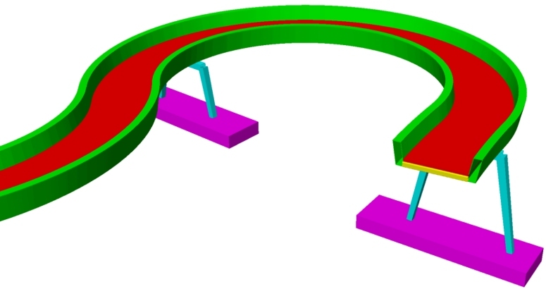 구불구불한 정렬과 매우 제한된 부지로 인해 기둥 위치를 찾는 것이 도전적이었습니다. 설계 작업 흐름은 다양한 경간 배열을 신속하게 비교할 수 있도록 하여 설계 팀이 경간을 균형 있게 조절하고 지지 부재 수를 줄일 수 있도록 하였습니다. 구불구불한 정렬은 비대칭 길이 방향 거더와 결합되어 길이 방향 거더는 각 축에 대해 설계 하중 작용을 받고 크로스 거더는 상당한 유도 하중을 받게 되었습니다. 이 작업 흐름을 통해 주요 거더 크기, 크로스 거더 크기 및 위치의 여러 조합을 분석하여 구조적 거동을 개선하고 재료량을 줄일 수 있었습니다.