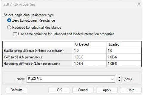 도상은 교량의 종방향으로 아래 그래프와 같은 거동을 하는 스프링으로 표현하며, 레일에 열차 하중 존재 유무와 교량과 레일의 상대처짐량에 따라 비선형 거동을 하여 각 스프링은 해석 과정에서 최대 4회 (온도하중에 의한 변화 2회, 열차하중과 온도하중 조합에 의한 변화 2회)의 변화가 발생할 수 있습니다.