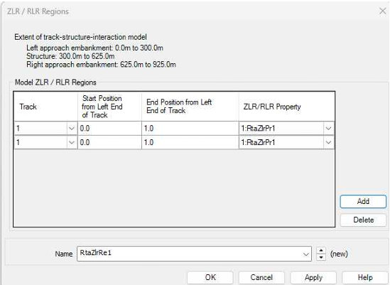 각 경간 별로 자갈 도상 혹은 콘크리트 도상을 지정함으로써, 여러 종류의 교량을 통과하는 궤도-교량 상호작용 해석 모델을 구성할 수 있습니다.