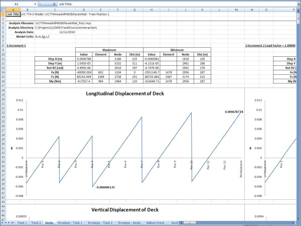 LUSAS Rail Track Analysis는 Excel Spreadsheet에 정의한 데이터를 이용하여 모델을 자동으로 구성하고 Excel Speadsheet 또는 LUSAS 결과파일 형태로 결과를 출력합니다.